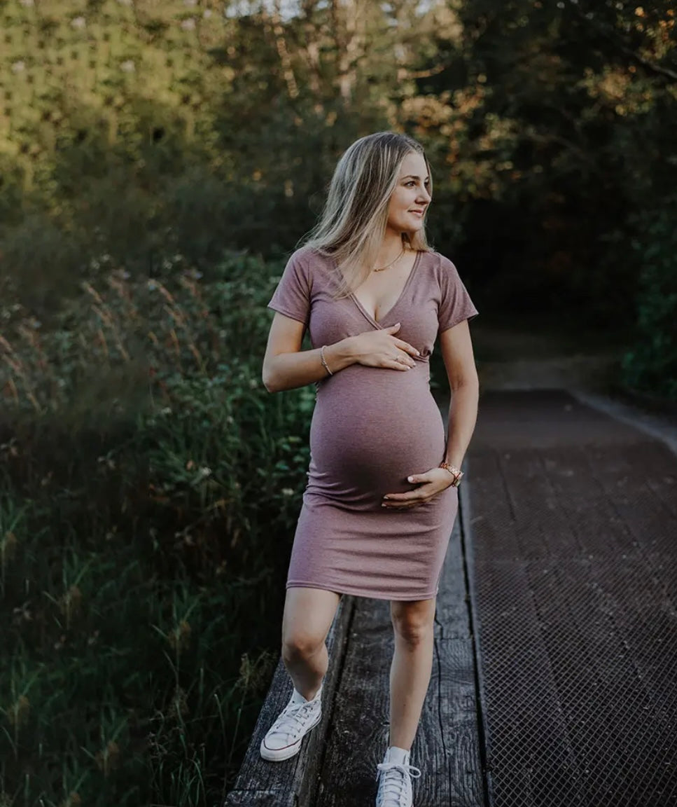 Expertly designed for all stages of motherhood, the All Stages Dress is the perfect addition to any maternity and nursing wardrobe. Featuring a soft heather rose color, this dress offers comfort and convenience without sacrificing style. Embrace motherhood with ease and style in this versatile and practical dress.