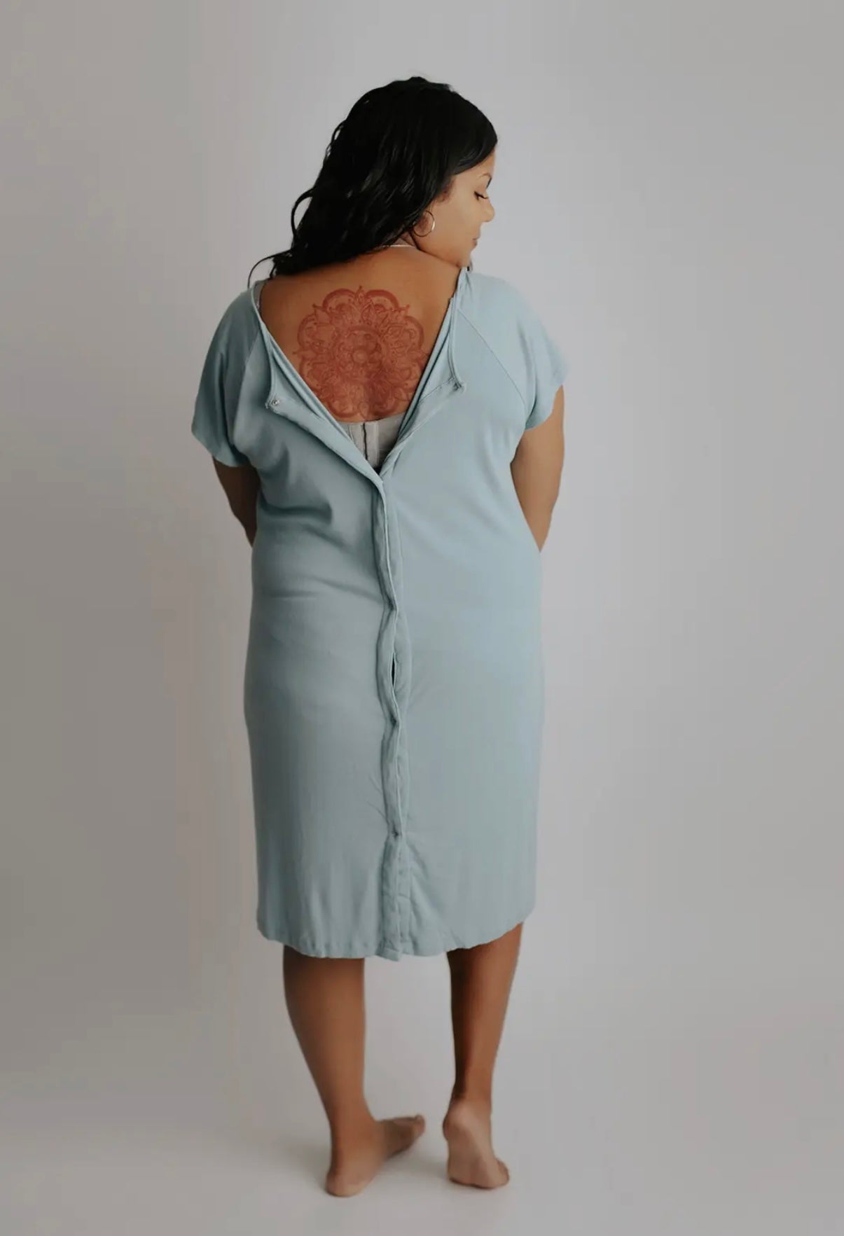 Unlike standard hospital gowns, ours are made to move with you, whether you’re walking the halls, riding out contractions, or snuggling your new baby. Plus, they’re nursing-friendly, C-section compatible, and postpartum approved.
