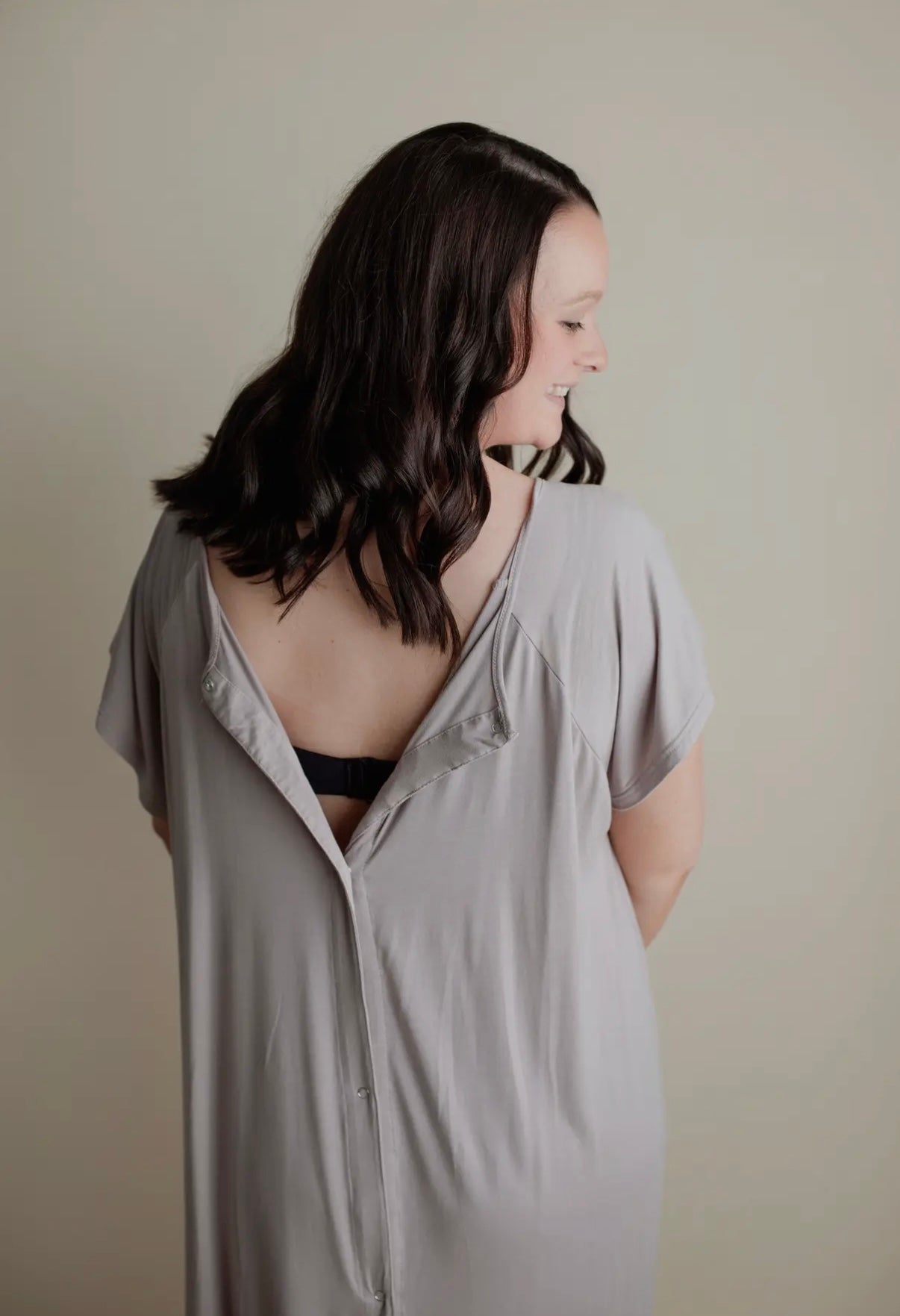 Designed with mamas in mind, our labor and delivery gowns bring comfort, function, and a touch of softness to one of life’s biggest moments. With buttery-soft fabric, easy-open snaps for medical access or skin-to-skin bonding, and a flattering fit that helps you feel like you—even in the delivery room—this gown is the perfect hospital bag essential.